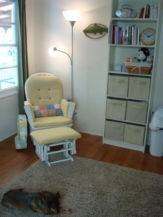 Don’t worry – we’re working on it. (I should say Dad is working on it. Do I have time to hunt down long-lost warranties and tinker with the delicate innards of a digital camera? Ha! No.) In the meantime, how about we take a tour of the room where I spend about 40% of my time these days? This way to the nursery!