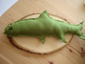 For instance, Jake made a foam core buck head (from a pattern on the www) and covered it in fun patterned paper. And I took a photo of a seabass using it as a template for this simple trophy fish.