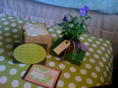 The gorgeousness of this event all kicked off with a killer invitation. It was a small box delivered to each guest containing a live plant with a tag attached that read: “In celebration of the growing Lewis family.” I don’t know how Elly got UPS to accept these plants as legitimate mail items. She must have shown some leg or something.