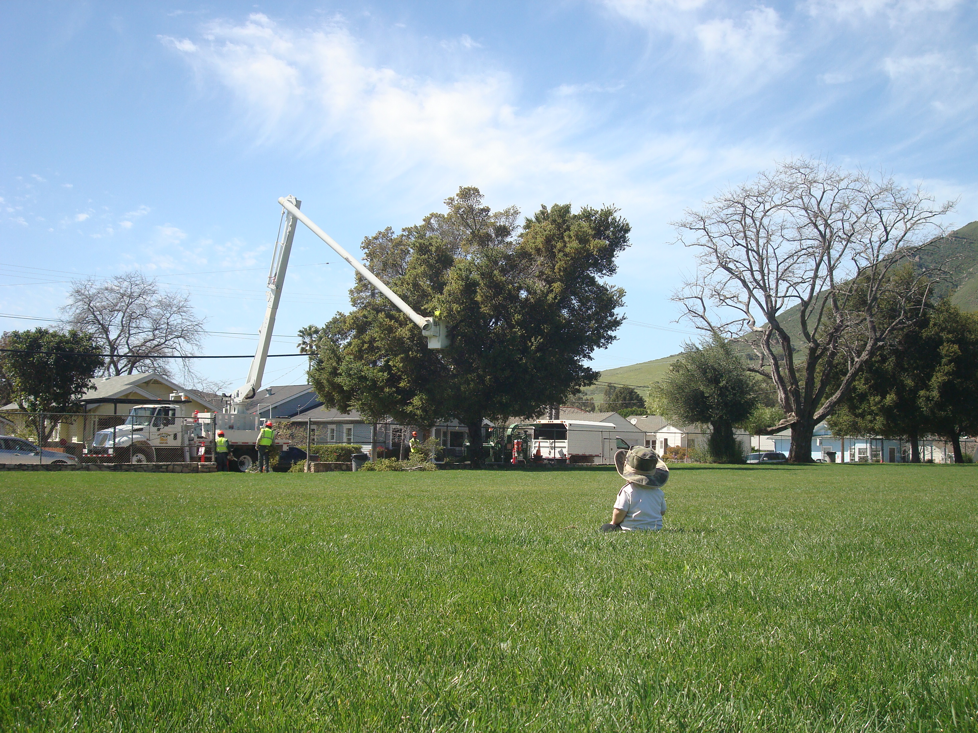 I took this video as Seabass watched some city workers trim a tree on the edge of the park. For a little boy, is there anything better than a sunny day at the park watching a crane and guys in hard hats? I think not.