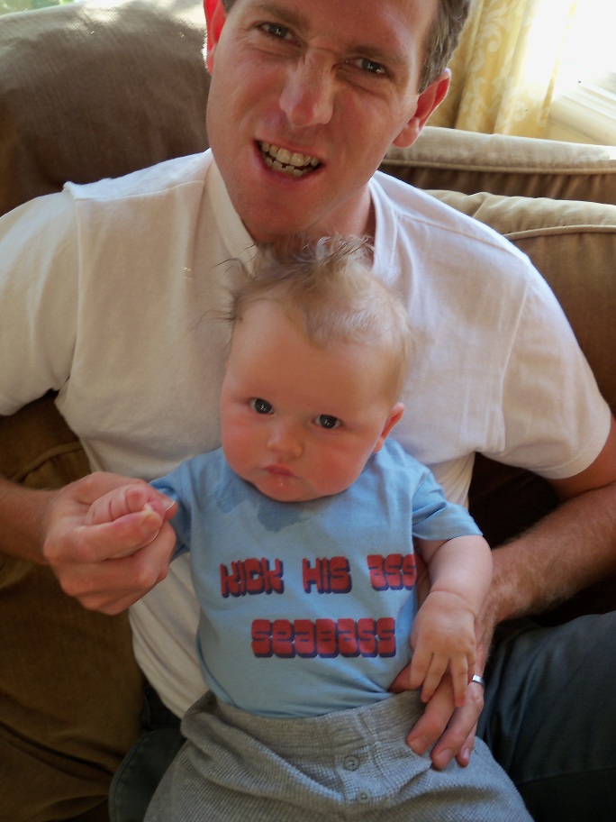 You know who should be thanking Jake for putting boundaries on me? Seabass. That poor child has been publicized as a crying and peeing, butt-stealing, dog-eaten, easily-abandoned, frustration-causing and depression-inducing little boy. And that’s not even mentioning the dandruff! What happens when he’s old enough to hear about what I’ve written from his friends? “Hey Seabass, I hear you peed the bed again. Nice job. Now I’m gonna have to beat you up.” (Jake assures me this will never happen because with a name like Seabass, you tend to be the beater-upper-guy, not the beaten-up-guy.)