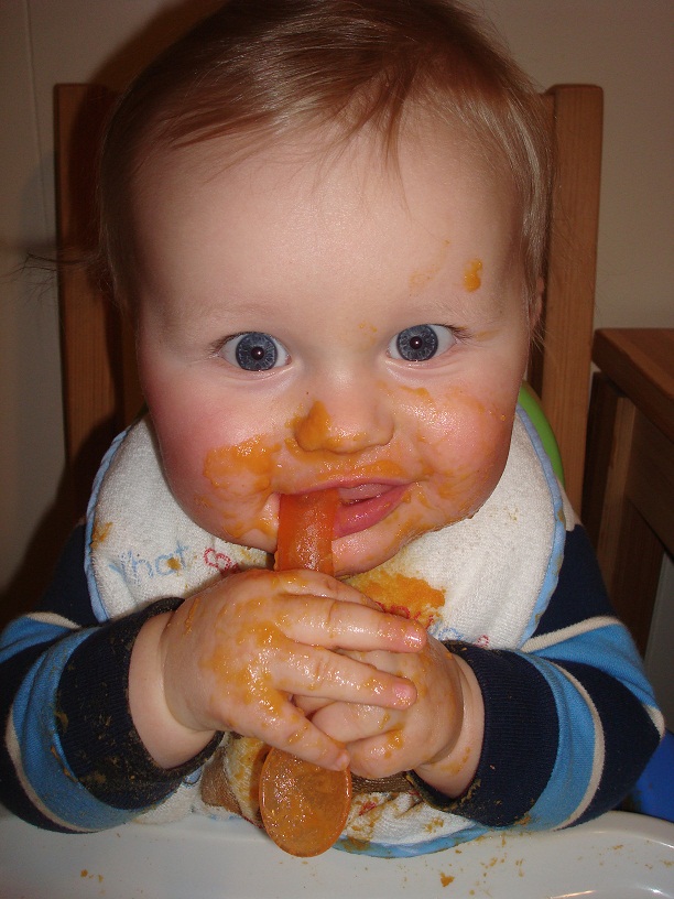 Anyway, even though I’m definitely enjoying breastfeeding at 6 1/2 months, I’ve been feeding Seabass solids irregularly since he hit four months of age. I hadn’t planned on starting so early, but Dr. Awesome suggested that introducing rice cereal at four months might calm Seabass down a little. I don’t know that it did, but he enjoys the process, and we love watching him attack the spoon with reckless abandon.