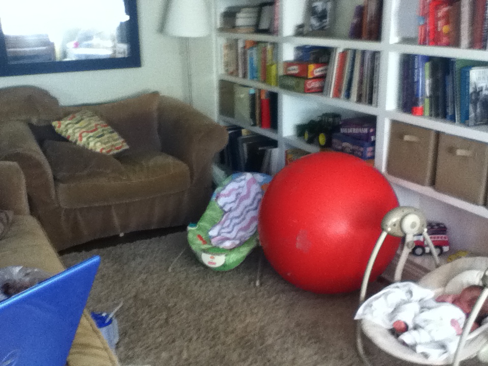After the bath, I managed to get dressed before heading to the living room to moan on the exercise ball a bit. Jake decided to call the doctor, who heard our tale and told us to depart for the hospital whenever we were “ready.”